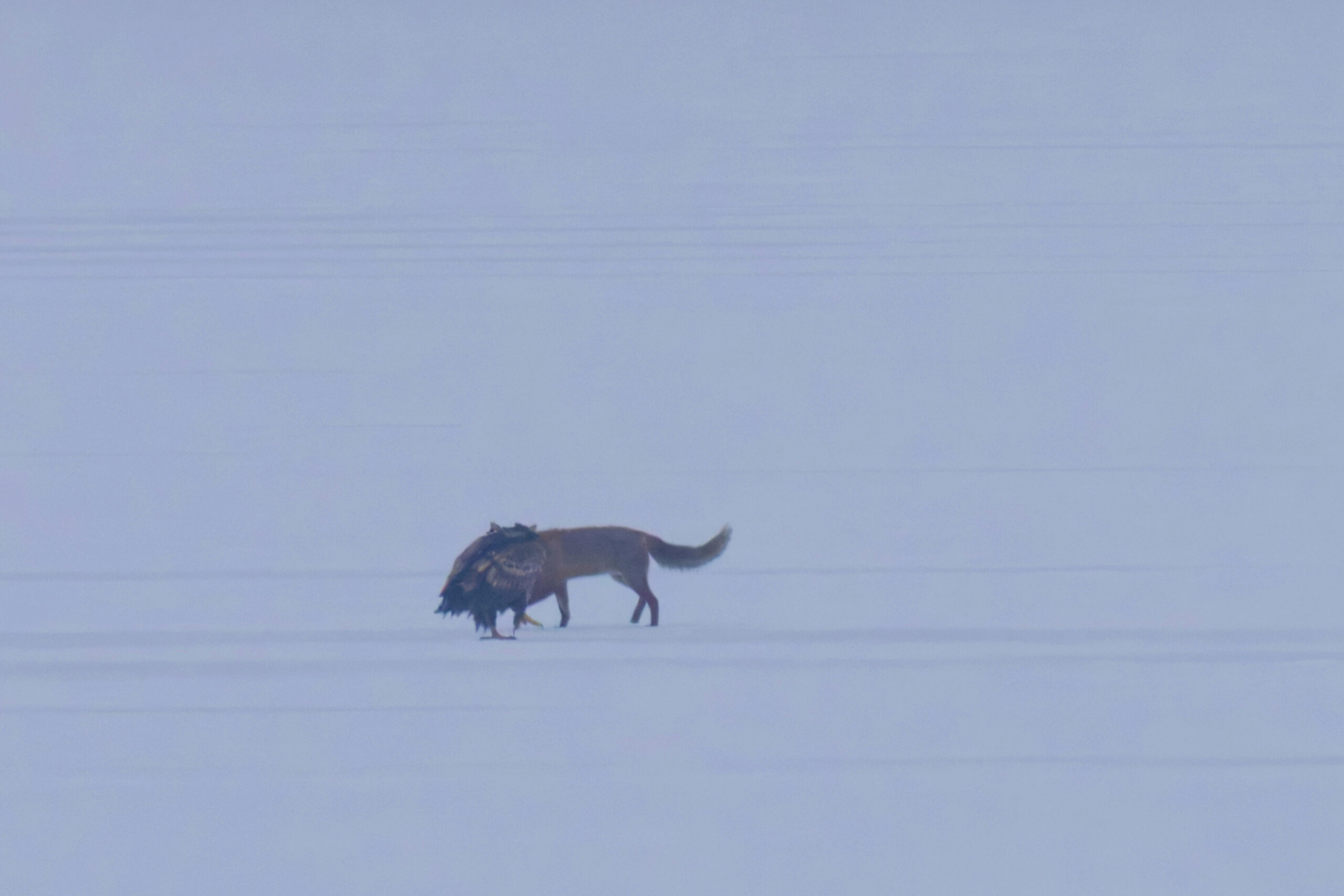 Das besondere Erlebnis – Fuchs beim Fressen , Fuchs und Seeadler auf dem Eis