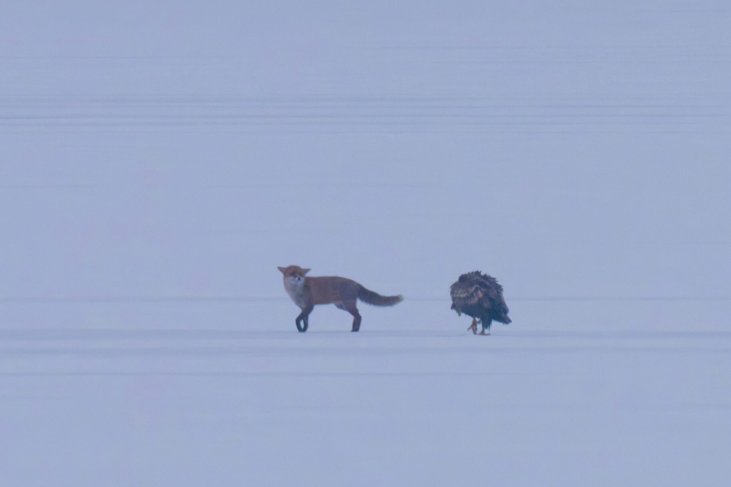Das besondere Erlebnis – Fuchs beim Fressen , Fuchs und Seeadler auf dem Eis