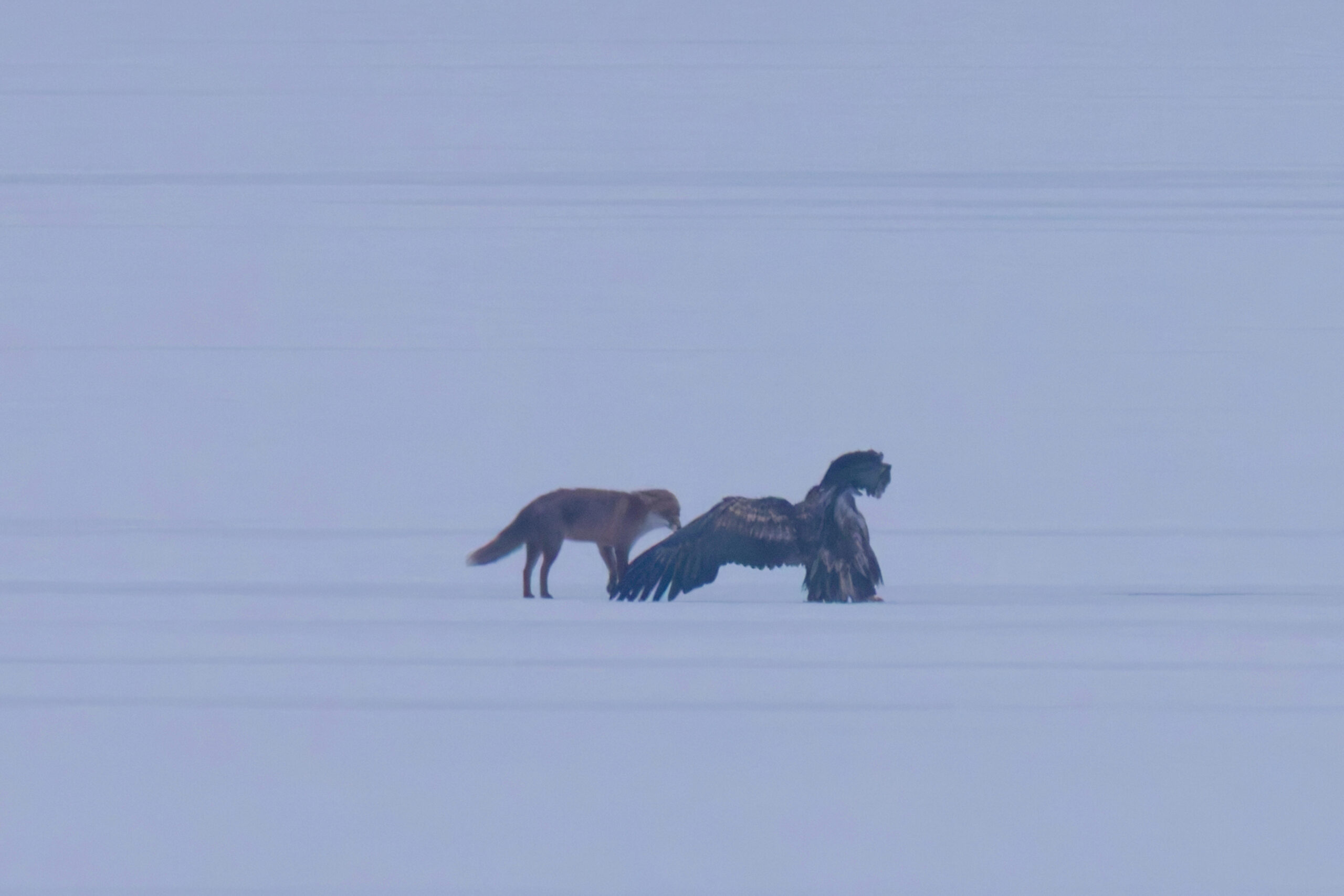 Das besondere Erlebnis – Fuchs beim Fressen , Fuchs und Seeadler auf dem Eis