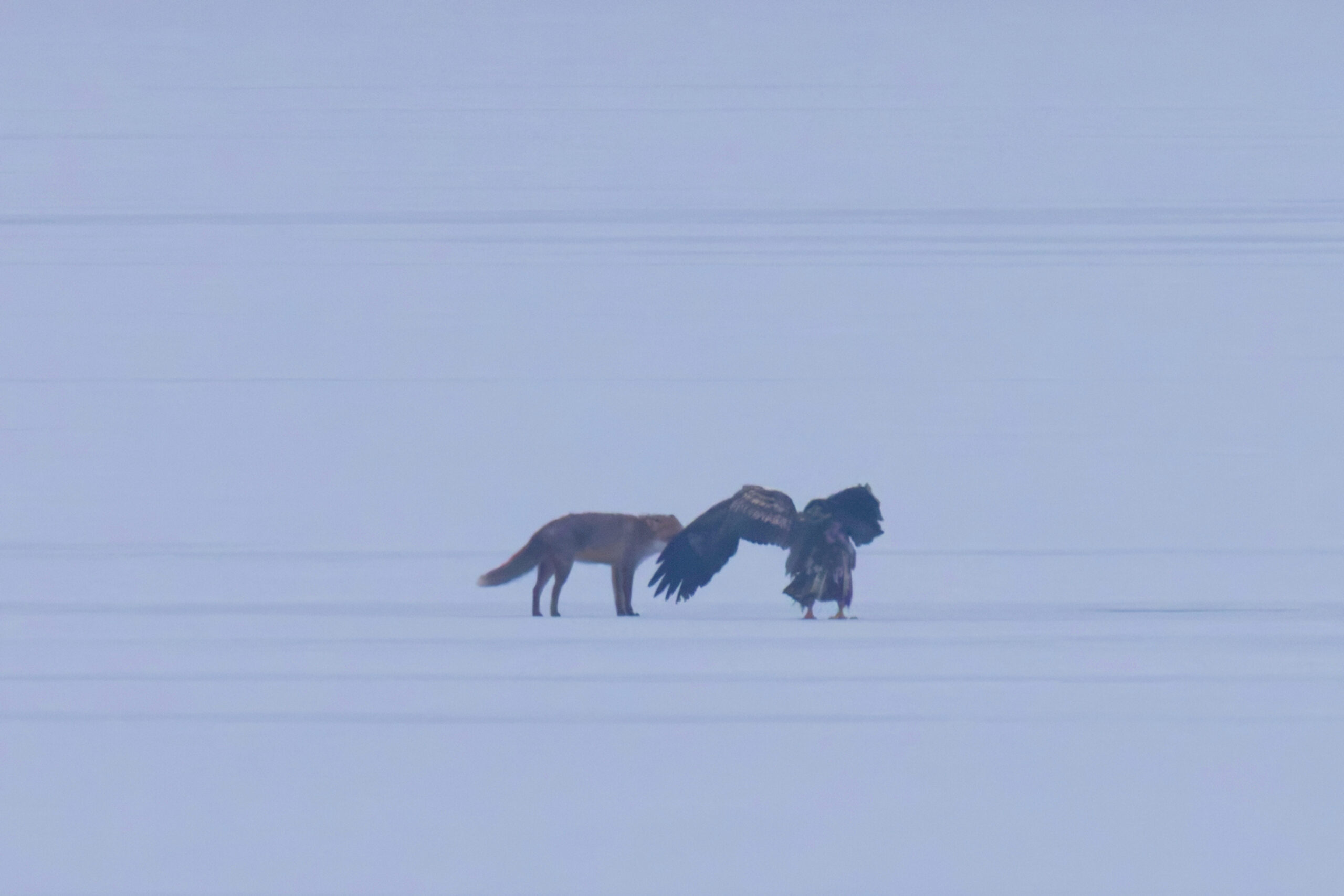 Das besondere Erlebnis – Fuchs beim Fressen , Fuchs und Seeadler auf dem Eis