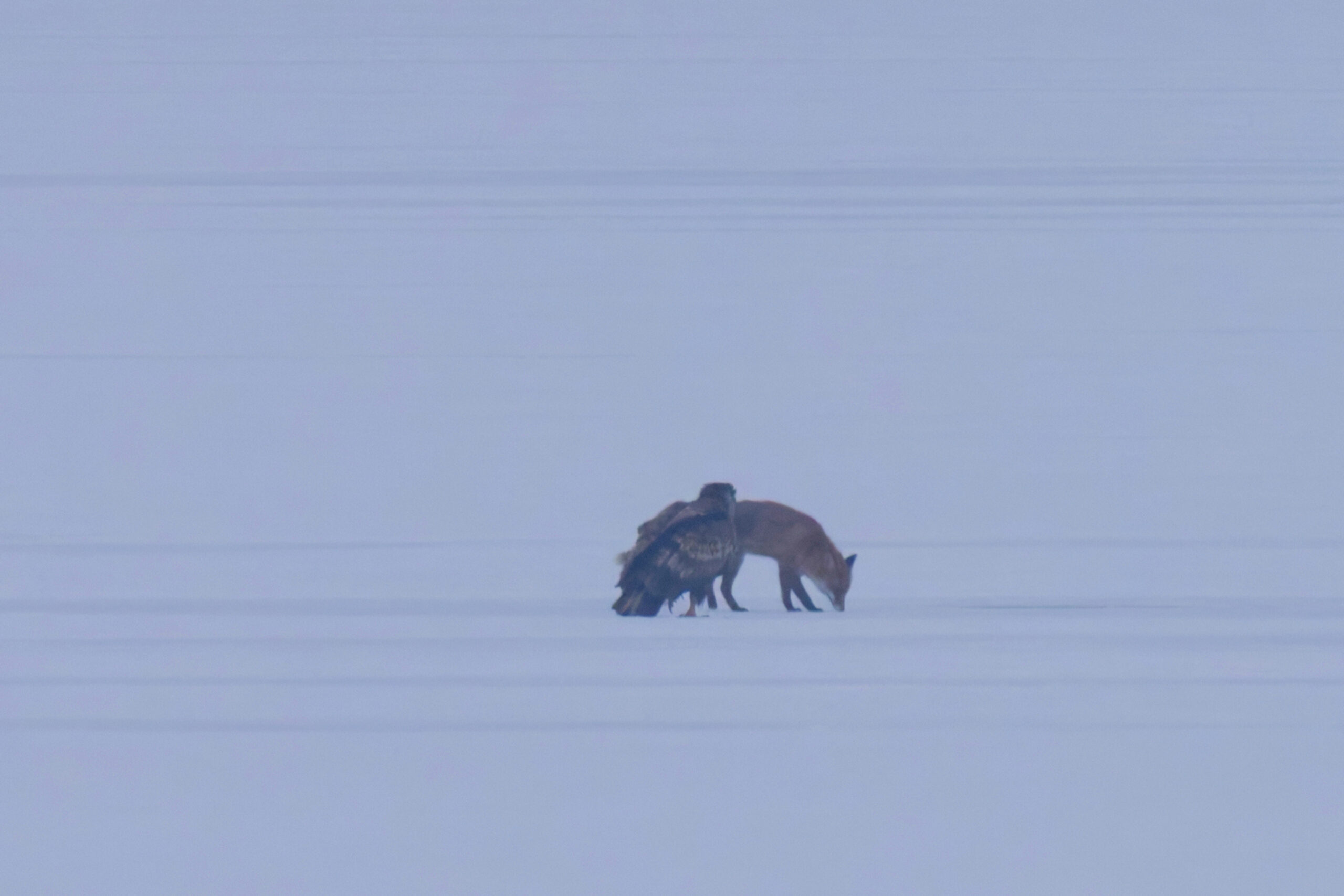 Das besondere Erlebnis – Fuchs beim Fressen , Fuchs und Seeadler auf dem Eis