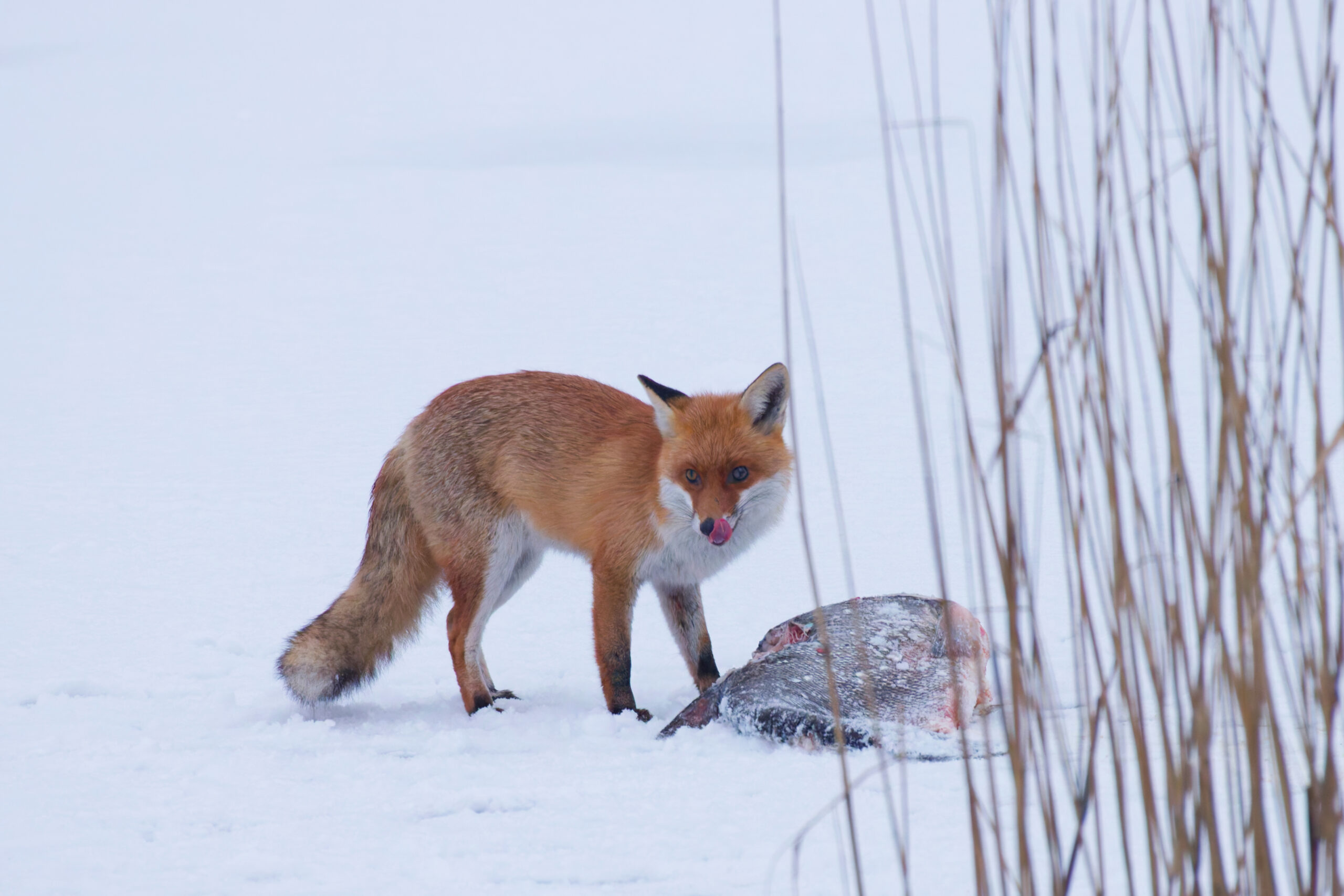 Das besondere Erlebnis – Fuchs beim Fressen , Fuchs und Seeadler auf dem Eis